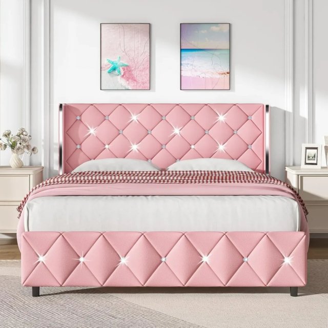 Elevate your bedroom with this Queen Size Upholstered Platform Bed Frame. Designed with both style and practicality in mind, this bed frame will bring a touch of elegance and sophistication to your space. Featuring a sleek adjustable headboard, high-density foam padding, and a sturdy metal and wood frame, this platform bed offers the perfect combination of comfort, durability, and modern design.
